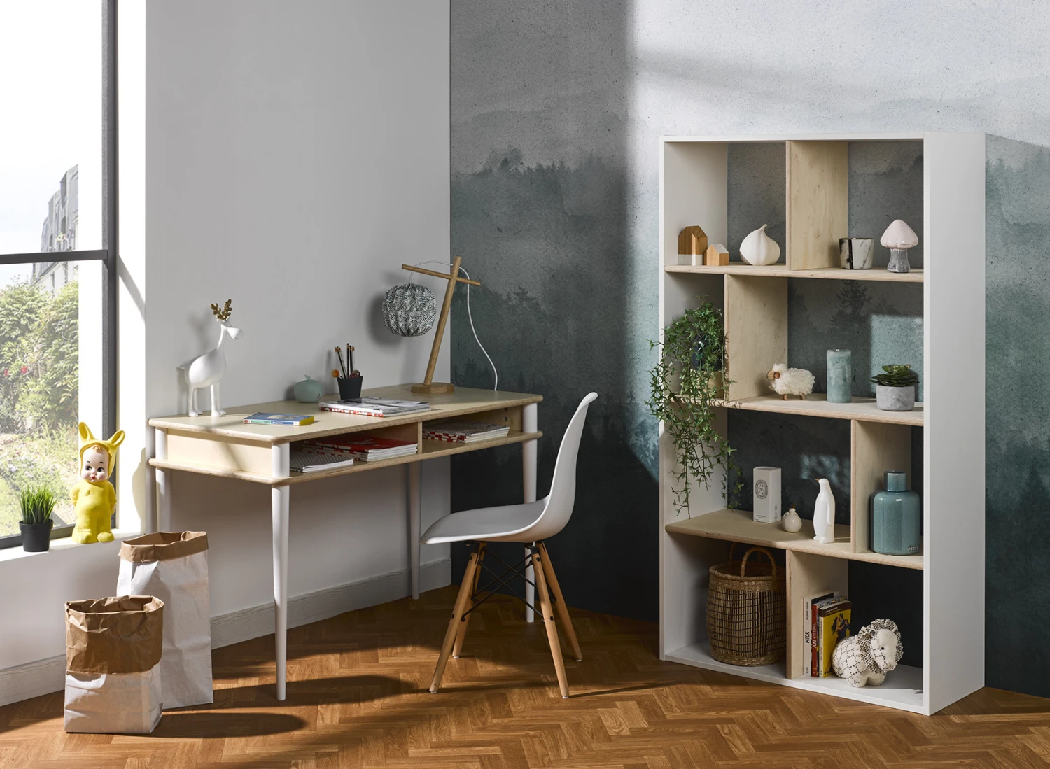 La bibliothèque 8 cases blanc et bouleau SYMI répond à tous ces critères !