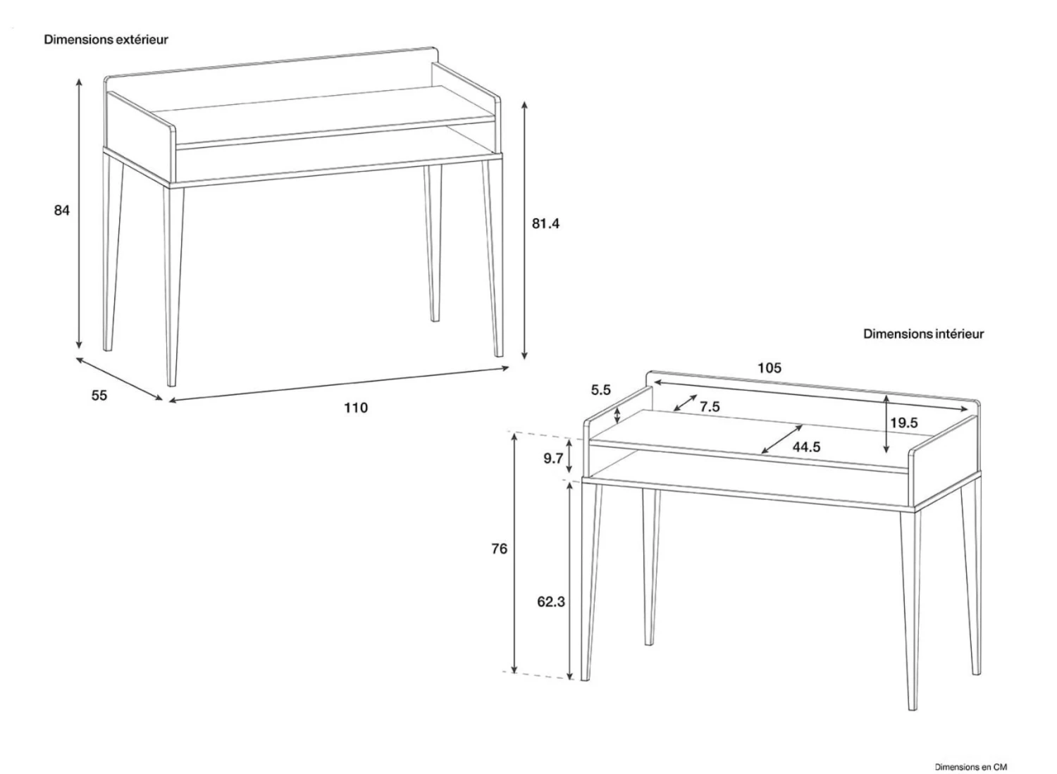 Le bureau enfant VOLT est de dimensions 110 x 55 x 86 cm. Il est donc assez grand en hauteur pour s’adapter à toutes les tailles.
