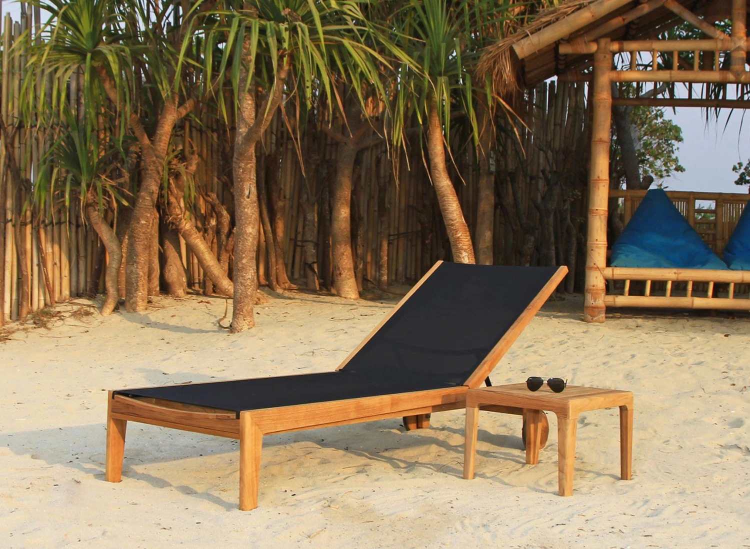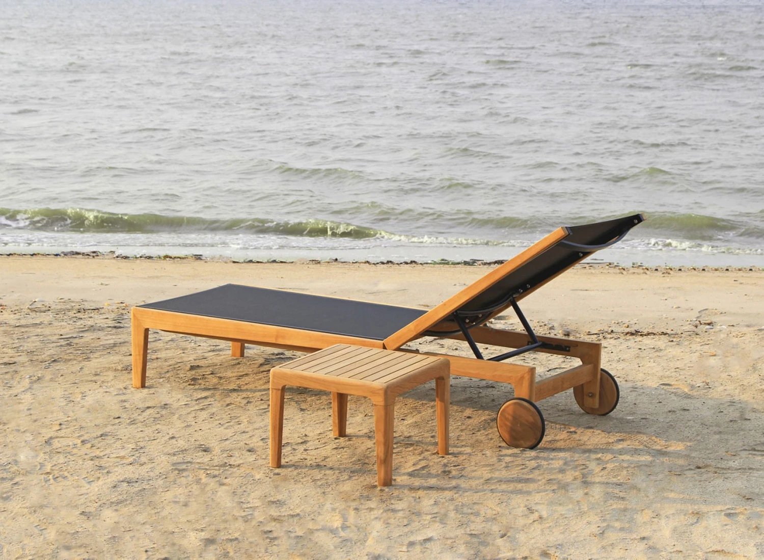 Le transat PRAIA est aussi pratique qu’esthétique. Ses pieds en bois de teck sont solides et permettent à votre chaise longue de rester en place sur tout type de sol. Avec ses roulettes situées à l’arrière, vous pouvez déplacer votre bain de soleil en toute simplicité. Les roulettes tout-terrain assurent un déplacement fluide de votre transat sur l’herbe, le carrelage, les dalles et même le sable.