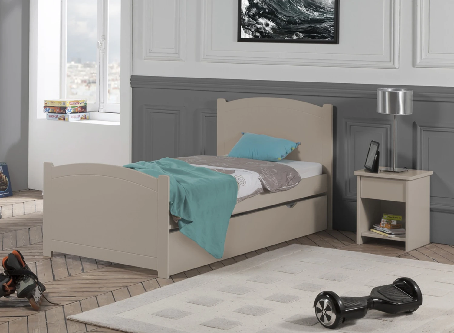 Si le tiroir peut accueillir les jeux, jouets ou des appareils électroniques, la niche de rangement quant à elle est ultra-pratique pour agencer les livres ou les BD.