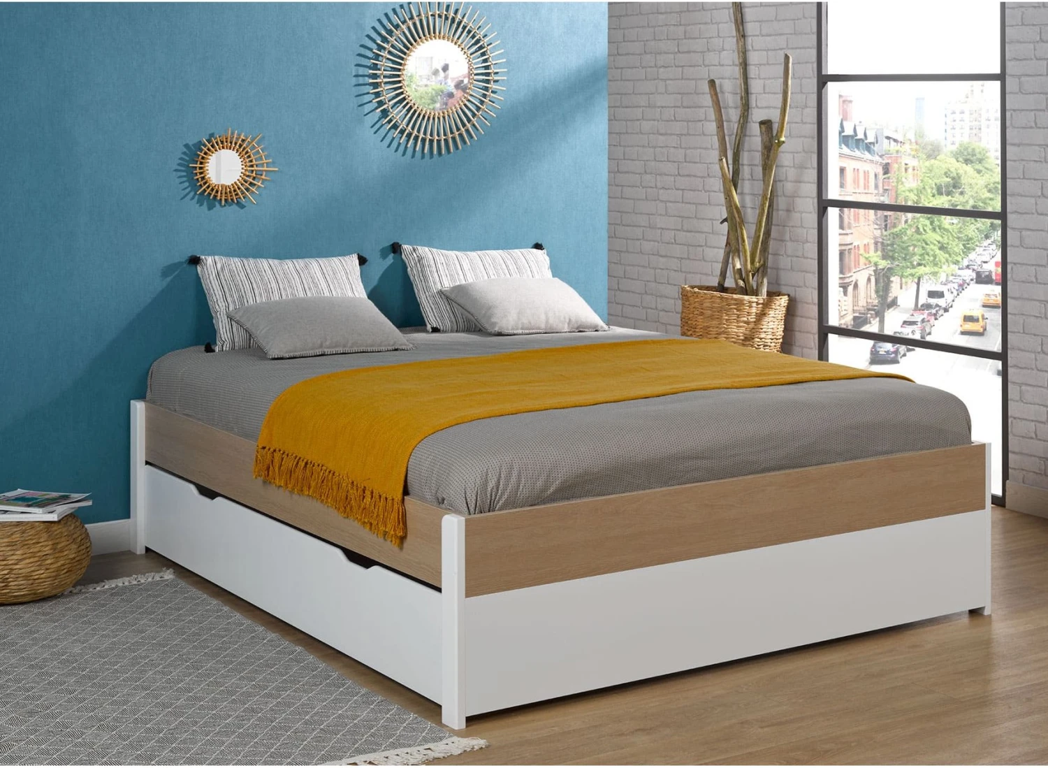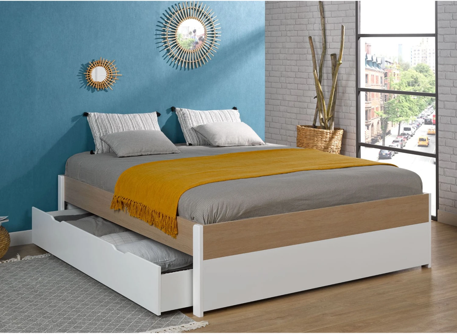 Nous avons choisi ce lit double 160×200 pour son style scandinave. Cela signifie qu’il est conçu avec des lignes simples et brutes et des couleurs claires qui s’adapteront forcément à la chambre de votre ado !