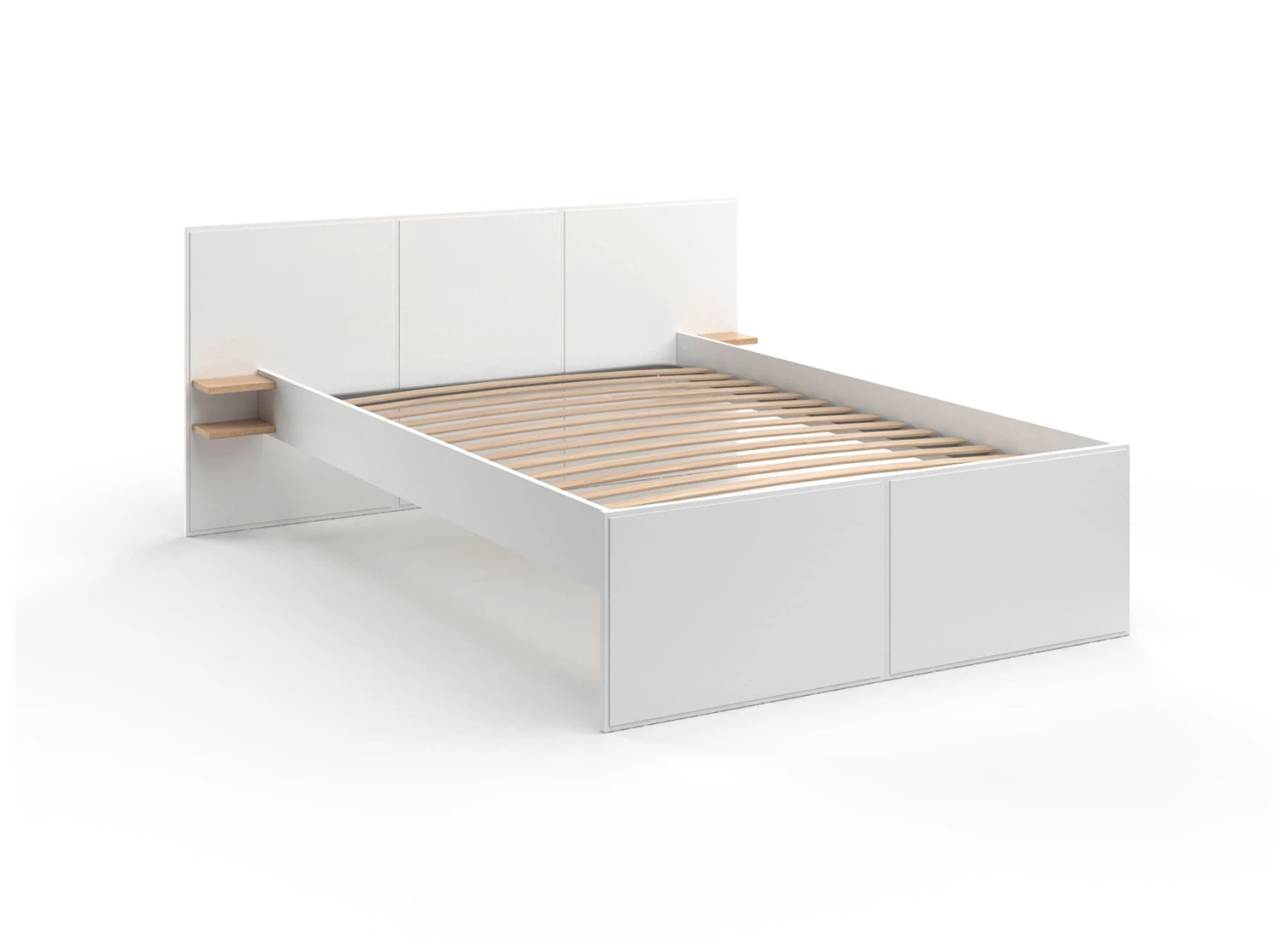 Le lit 140×200 cm offre un style moderne idéal pour une chambre d’adulte ou d’adolescent. Avec sa tête de lit et ses tablettes de chevet intégrées, il donnera tout de suite une nouvelle allure à la pièce. Disponible en coloris blanc ou ardoise, il s’assortira très facilement au reste de la décoration de la pièce. Les tablettes sont en chêne de Slavonie et donnent une touche d’originalité à l’ensemble de ce lit double en bois.