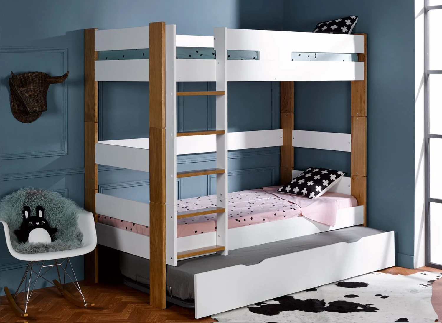Moderne et bien pensé, le lit superposé 3 places CODY est un véritable atout pour les plus petites chambres d’enfants. Grâce à son système astucieux, ce lit superposé design permet d’installer 3 enfants pour la nuit, mais aussi de moduler le meuble en fonction de ses besoins. Il s’agit d’une solution très intéressante lorsque l’on manque de place.
