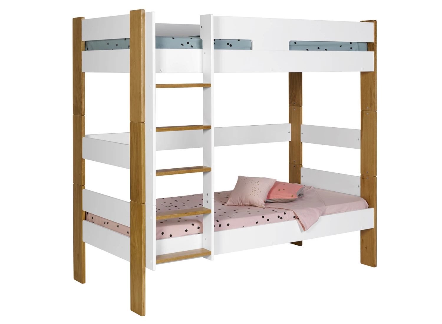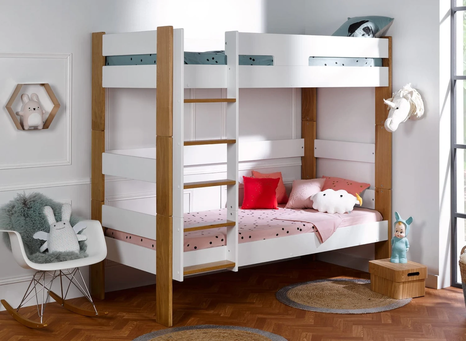 Lit superposé 90×190 blanc et bois CODY : original, robuste et écologique