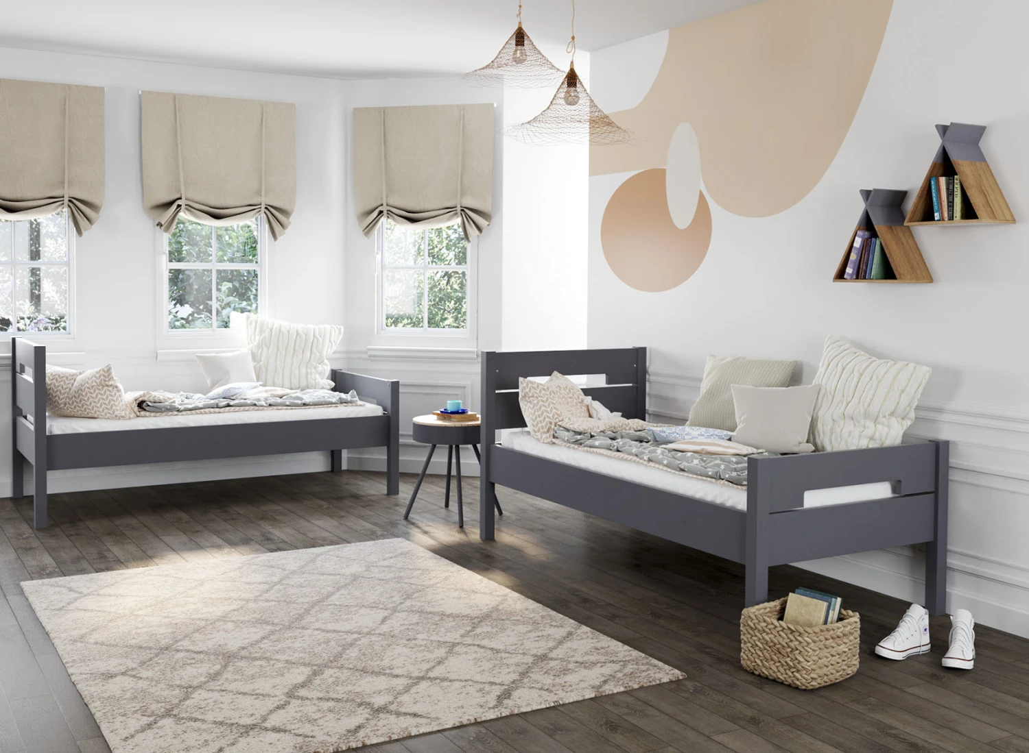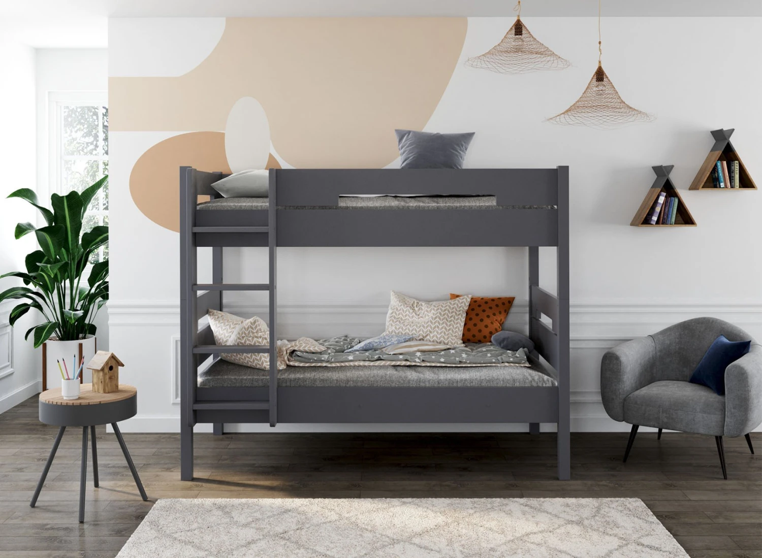 Optez pour un lit superposé séparable 90×190 avec ces 2 matelas écologiques et confortables en coutils de bambou. Choisissez un lit superposé en bois pour gagner de l’espace dans la chambre et pour que vos enfants passent de douces nuits. Pack lit superposé ANGEL + 2 matelas 90x190x16cm. Disponible en 3 couleurs : blanc, gris ou ardoise