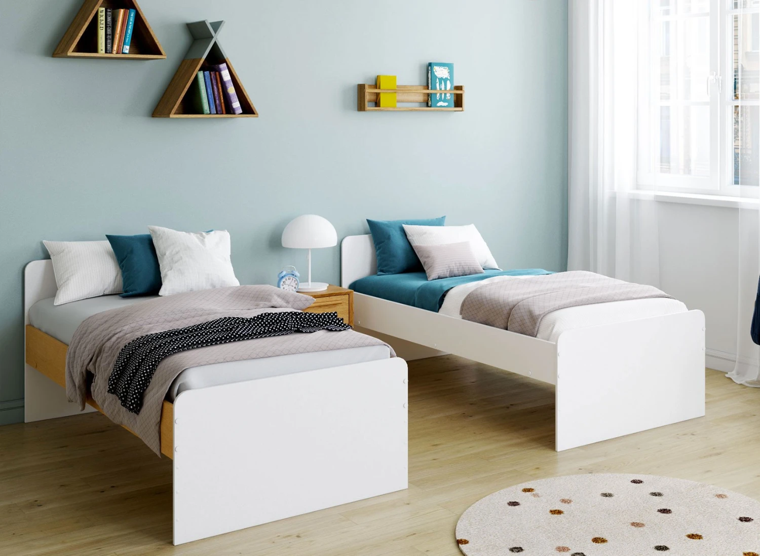 Notre lit superposé en bois NOE a la particularité de proposer un lit superposé pour enfant au style moderne et original, qui peut aussi se séparer en deux lits simples. Vous choisissez facilement la configuration qui vous convient le mieux tout en gardant la possibilité de changer d’avis.