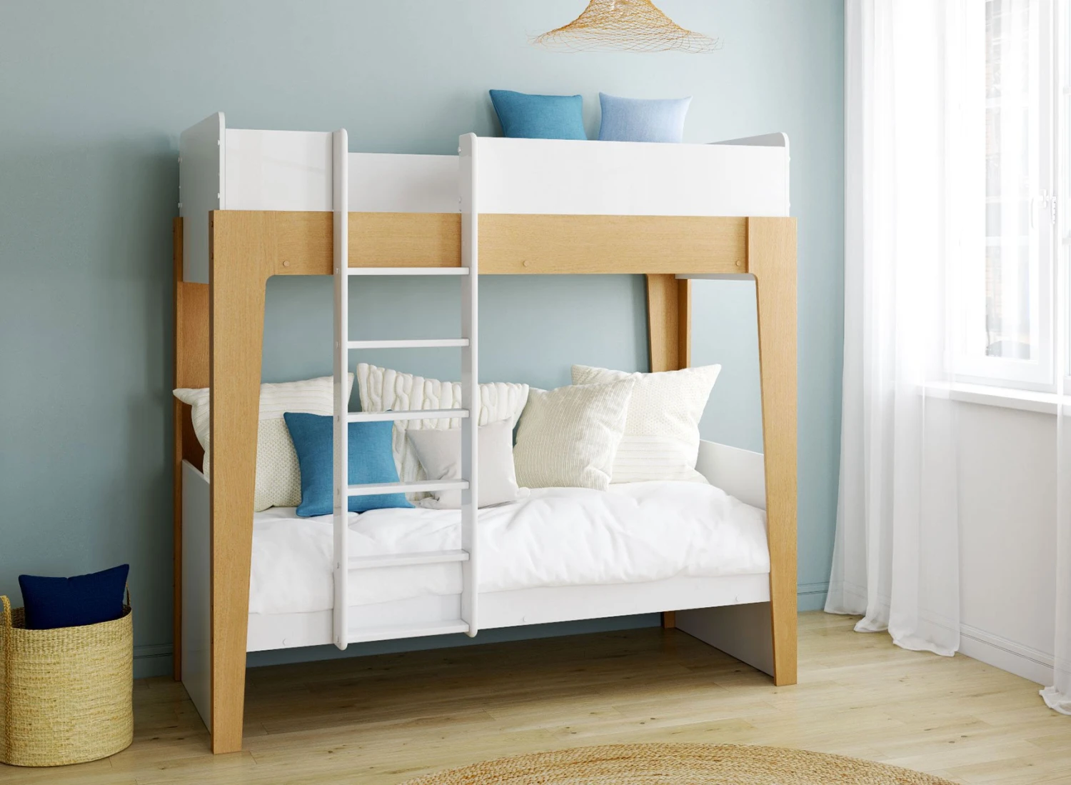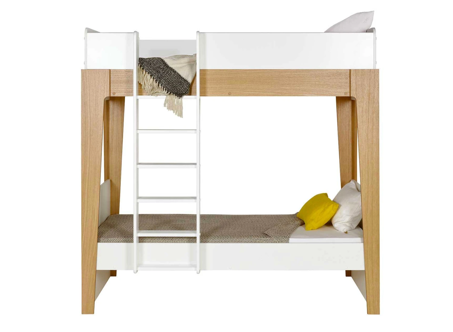 Avec le modèle NOE, vous pouvez opter pour un lit superposé design et écoresponsable à la fois. Le joli style blanc et bois de ce lit superposé 90×190 trouvera facilement sa place dans de nombreuses décorations de chambres d’enfants.