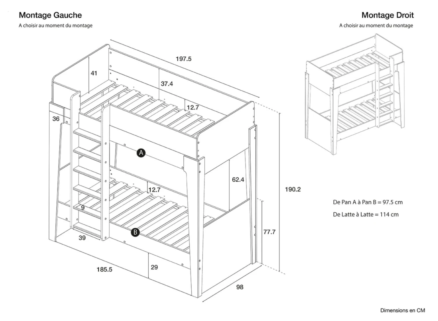 Ce lit s’adapte à votre intérieur, vous pouvez fixer l’échelle où vous le souhaitez, à gauche ou bien à droite.