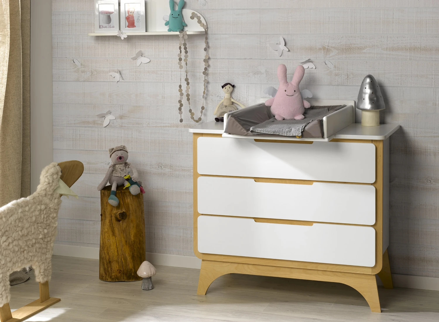Adoptez un plan à langer avec votre commode OXYGENE. Il vous permettra de changer votre enfant facilement et en sécurité. Celui-ci est amovible ! Vous pourrez ainsi le mettre et l’enlever comme vous le souhaitez.
