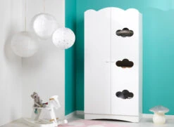Et si vous aménagiez une chambre de rêve pour votre bébé ! La chambre bébé complète CLOUD avec ses motifs en forme de nuage est idéale pour une déco douce et originale. Le lit bébé, l’armoire et la commode reprennent le thème du nuage et des rêves pour créer un véritable cocon dans la chambre de votre enfant.