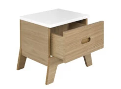 La table de chevet en bois EKKO est dotée d’un design scandinave intemporel. Ce style de meuble est un style épuré et simple, comprenant des lignes droites, pas de courbes, ni de fioritures. Généralement, les meubles scandinaves sont de couleurs claires, comme ce chevet blanc et bois.