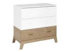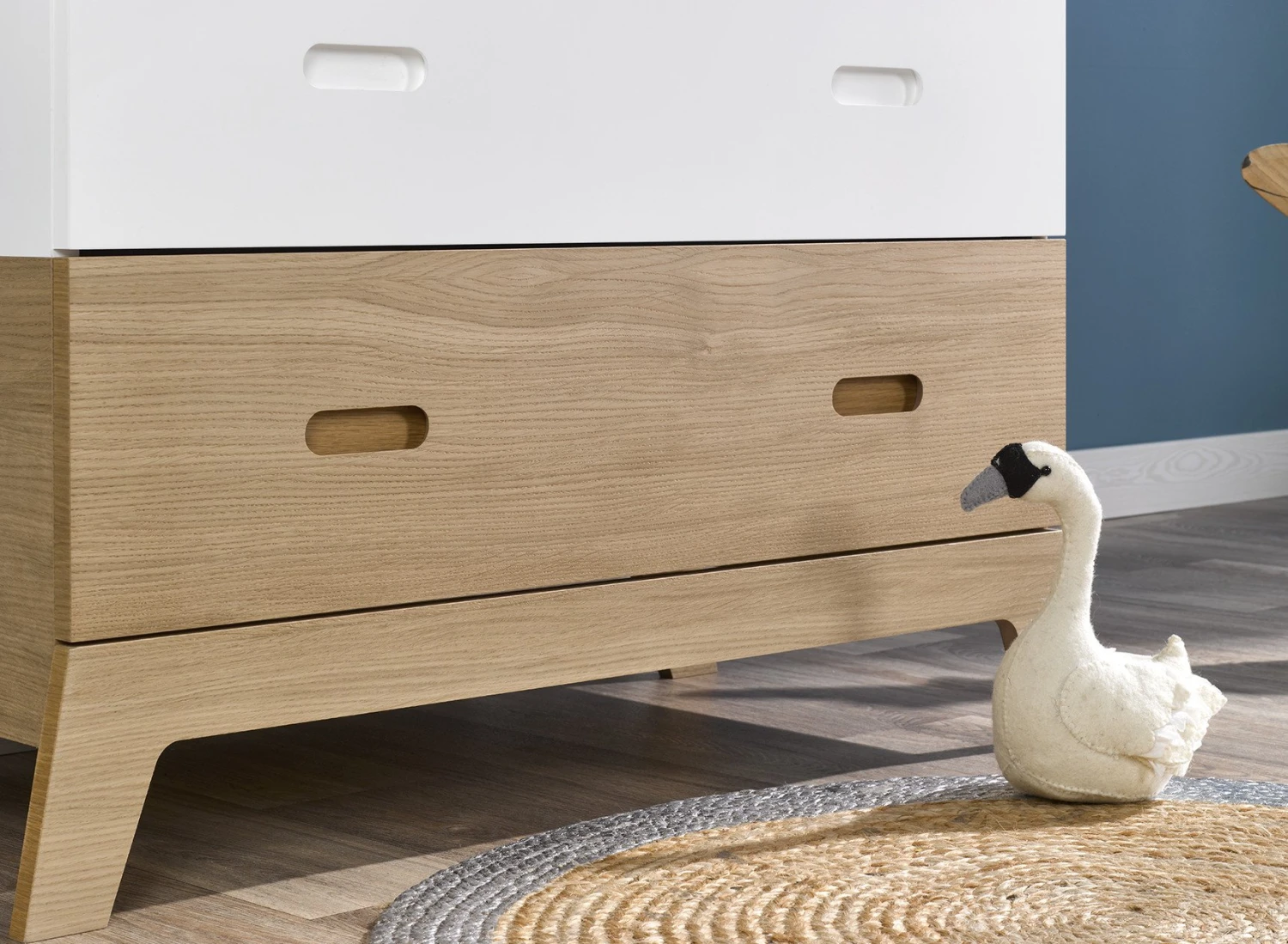 Le design est dans la simplicité. Avec ses courbes droites, ses pieds surélevés en chêne et son contraste entre bois blanc et chêne clair, cette petite commode chambre bébé offre des inspirations scandinaves à votre décoration d’intérieur.