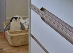 Cette commode bébé en bois peut aussi être associée à un plan à langer. En effet, vous avez la possibilité d’opter pour le plan à langer ETHAN. Il vient se fixer sur le plateau de la commode 3 tiroirs pour créer une commode bébé à langer. Lorsque bébé n’aura plus besoin d’être changé, il peut être retiré très facilement afin de continuer d’utiliser la commode. Vous avez aussi la possibilité de compléter le tout en choisissant notre lit bébé évolutif ETHAN. D’abord lit à barreaux, il peut ensuite être transformé en lit pour enfant.