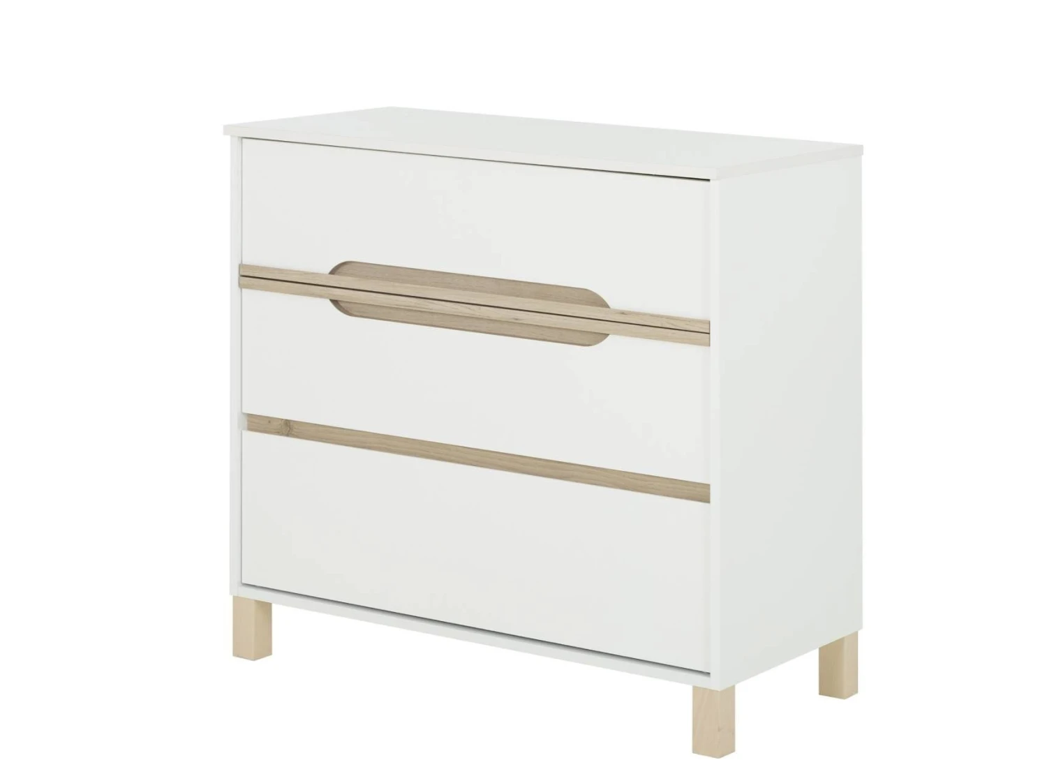 Avec son design moderne, la commode chambre enfant ETHAN trouvera sa place dans les chambres de bébé et/ou d’enfant au style contemporain. Avec son coloris blanc et ses détails en bois, le meuble permet de laisser libre cours à son imagination et ses envies en matière de décoration. Les 3 grands tiroirs de rangement de cette commode enfant seront par ailleurs idéaux pour organiser vêtements, linge de lit, linge de bain, chaussures, etc.