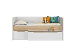Ce lit bébé évolutif 70×140 cm peut donc se transformer en lit banquette lorsque l’enfant grandit. Plus que cela, le lit bébé combiné ETHAN offre aussi la possibilité d’une transformation finale en lit 90×200 cm avec rangements (sommier non inclus) et un bureau.