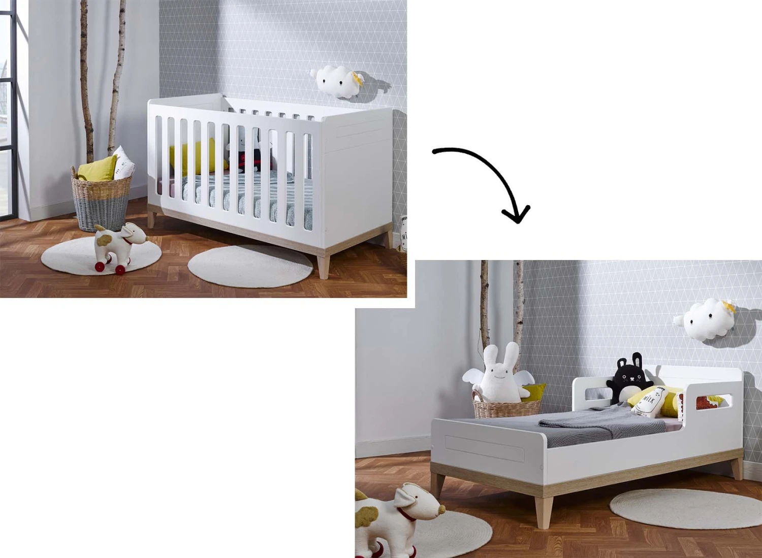 - Lorsqu’il grandit, transformez-le simplement en lit enfant 70×140 jusqu’à 6 ans