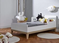 Ce lit enfant original offrira un design moderne et rétro dans l’intérieur de la chambre de l’enfant. Ses coloris simples blanches et de bois naturel vous permettront de décorer facilement la chambre de l’enfant sans fautes de goûts ni d’accumulation des couleurs.