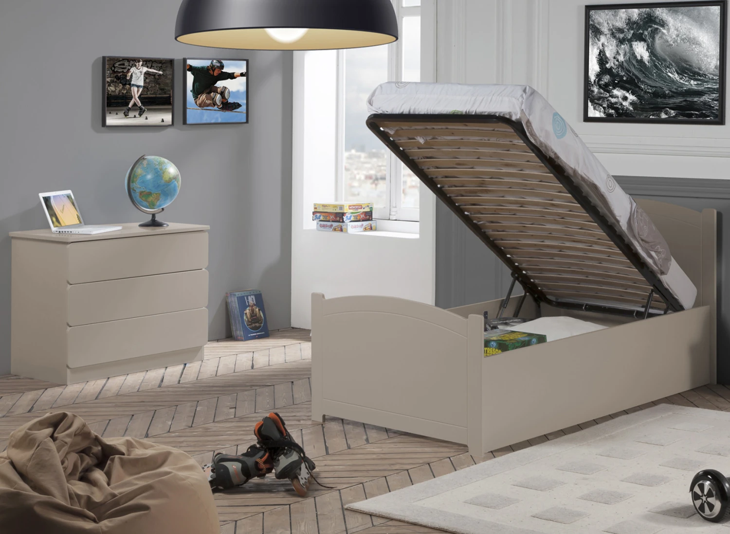 Pour les petites chambres ou les espaces encombrés, le lit coffre ado ou enfant apparaît comme une option idéale. Le vaste espace de rangement sous le sommier permet de stocker et de ranger facilement les jouets, les jeux ou même le linge de lit de vos enfants !