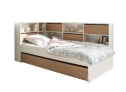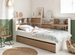 Le lit gigogne enfant MANLY est un lit gigogne en bois très pratique à utiliser au quotidien. Il s’agit avant tout d’un lit simple pour enfant encadré par de nombreuses petites niches ouvertes ou fermées. Les rangements de ce lit gigogne bois sont idéaux pour y installer de petits objets de décoration, mais aussi des livres par exemple. Toute la partie supérieure du meuble peut aussi accueillir des éléments de décoration ou encore une lampe de chevet par exemple.