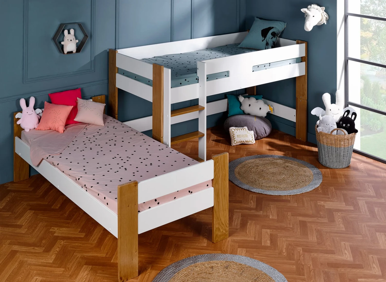 Le lit mi-hauteur CODY lui offre non seulement un lit mezzanine mi-hauteur, mais aussi une cachette rien qu’à lui.